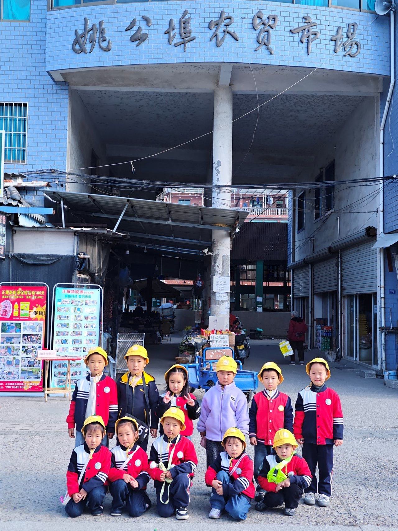 终于,孩子们排着整齐的队伍来到菜市场。